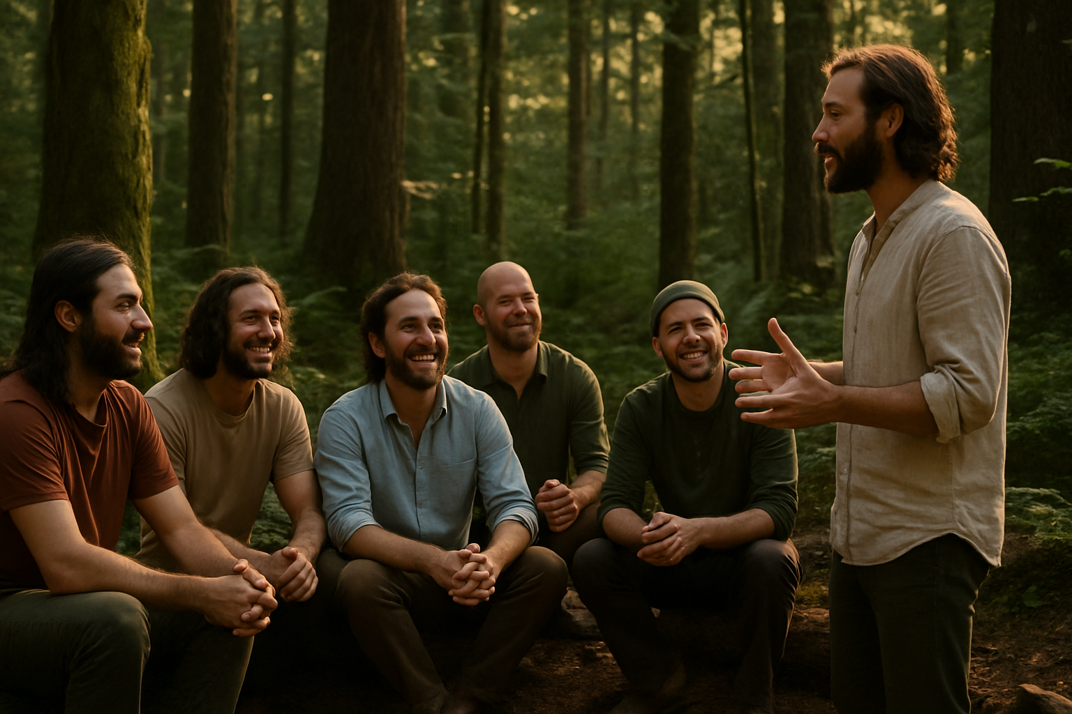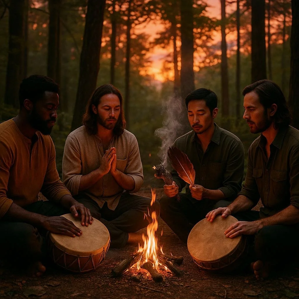 Once a month, on a Saturday near the full moon, we gather as men—fathers, brothers, sons, and grandfathers. We meet not to fix or perform, but to show up. To speak and be heard. To listen deeply. To soften into the places we've been hard, and to awaken the parts of us that have gone dormant in the noise of daily life. This is a space for storytelling, reflection, laughter, grief, rage, celebration, stillness, and insight. In circle, we return to something ancient. We remember what it feels like to be among men with open hearts and grounded presence.